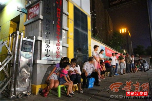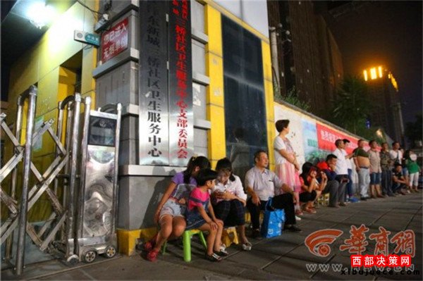 昨晚10時,西安市灃東新城三橋社區(qū)衛(wèi)生服務(wù)中心大門口,30余名家長排起了長隊,為了給入托孩子體檢,他們要一直等到31日早上7點醫(yī)院開始發(fā)號。
