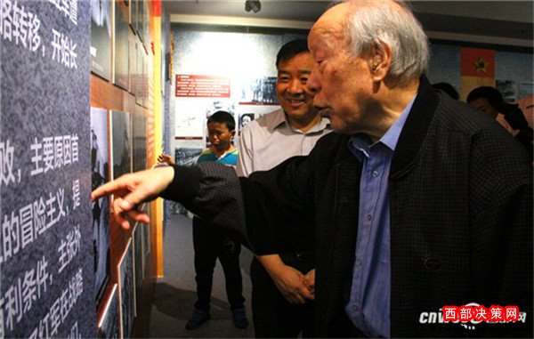 93歲老紅軍徐世均在展覽現(xiàn)場(chǎng)講述了自己參加長(zhǎng)征的故事。