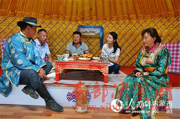 人民網(wǎng)記者在巴圖孟克開(kāi)辦的草原牧家樂(lè)蒙古包內(nèi)采訪(fǎng)