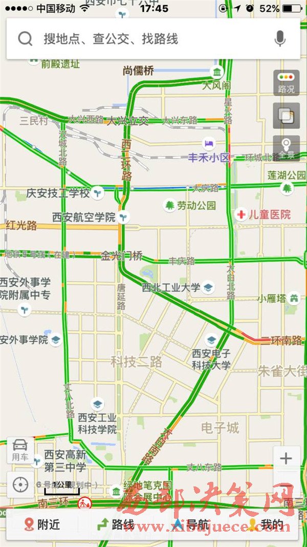 昨天下午晚高峰期,西安幾個(gè)著名堵點(diǎn)都顯示一路暢通
