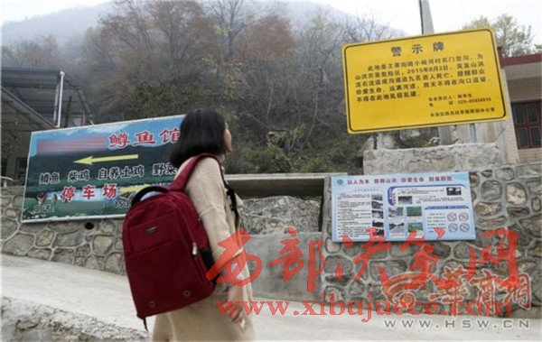 昨日上午,華商報(bào)記者來到王莽街道小峪河村涉事農(nóng)家樂,該農(nóng)家樂仍在正常營業(yè)。在農(nóng)家樂門口,立著一個(gè)很顯眼的黃色警示牌,是長安區(qū)防汛抗旱指揮部辦公室設(shè)置的,上面寫著2015年8月3日突發(fā)山洪造成九人死亡的事情,并提醒群眾遠(yuǎn)離河道,雨天不得在溝口逗留,不得在此亂搭亂建,該牌子。在警示牌下面,有一條用水泥砌成的水溝,從路邊一直通往山上,華商報(bào)記者注意到,在山坡上有水向下流出。