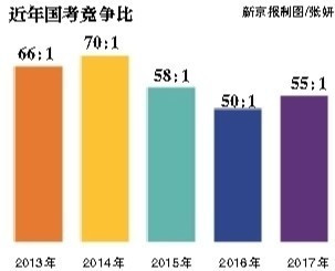 從招錄比看,平均55人競爭1個崗位。其中,競爭最激烈的崗位為民盟中央辦公廳“接待處主任科員及以下”一職,在截至報名結束前半小時競爭比就達9837:1,超過2013年度國考最熱職位的9411:1,創(chuàng)下歷史新高。