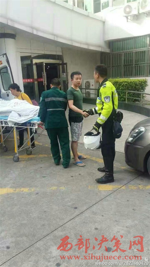 據(jù)現(xiàn)場目擊民眾@小蟲阿寶他爹:這輛救護車應(yīng)該走的丹平快速隧道,交警鐵騎開路,所有的車都自覺往兩邊靠,在兩排車道中間讓出了一條救命通道。我當(dāng)時就在隧道內(nèi)。圖為家屬感謝鐵騎隊員。