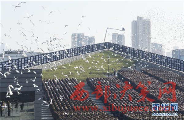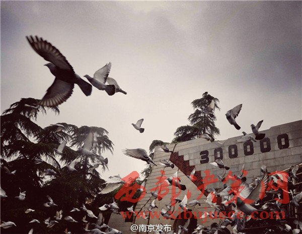 12月13日,3000羽和平鴿在公祭儀式現(xiàn)場振翅飛翔。