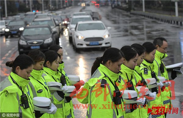 在南京市中心新街口,十點整,隨著凌厲尖銳的防空警報在南京上空拉響,往日熙攘熱鬧的新街口變得靜止。車輛緩緩?fù)W。鲃峪Q笛致哀1分鐘。行色匆匆的路人也停下腳步在寒風中低頭默哀。此刻,所有人共同緬懷在南京大屠殺中死難的同胞。