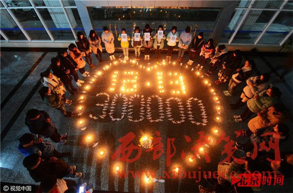 12月12日,江蘇省揚州市,揚州大學化學化工學院的學生們在祭奠南京大屠殺死難者。