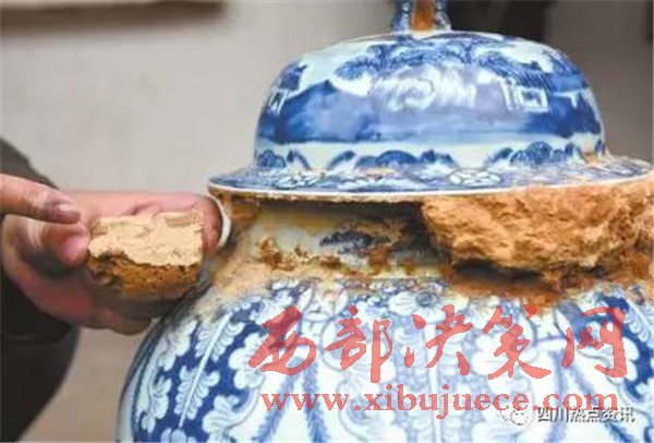 12日,簡(jiǎn)陽(yáng)高明鄉(xiāng),楊氏后人遷祖墳時(shí)挖出一個(gè)青花瓷壇,疑為清代文物。