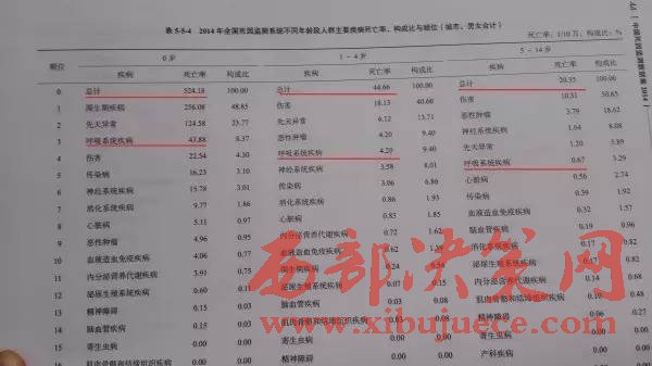 我們?cè)賮砜催@份國(guó)家衛(wèi)計(jì)委和中國(guó)疾病預(yù)防中心發(fā)布《中國(guó)死因數(shù)據(jù)集2014》,這是我國(guó)最權(quán)威的死因數(shù)據(jù)報(bào)告,其中兒童各年齡段的死亡率寫得很清楚。