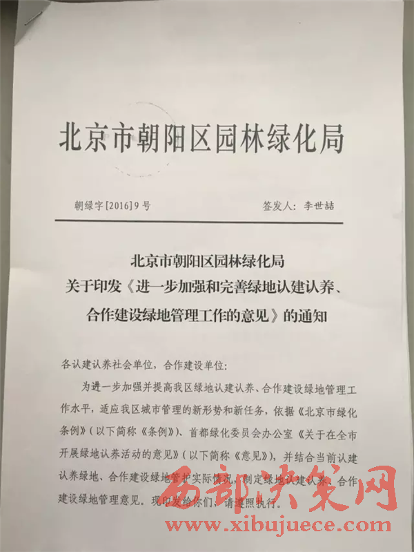 朝陽區(qū)園林綠化局負責(zé)人承諾將對綠地認養(yǎng)建立完善機制