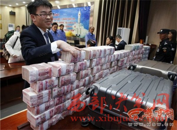 昨日上午9時20分,裝著1000萬現(xiàn)金的武裝押運(yùn)車開到工地,安保人員和企業(yè)員工將10萬元一捆的百元大鈔碼出了一座“錢山”,看著眼前堆成小山似的現(xiàn)金,早早前來排隊的農(nóng)民工們也是興奮不已。