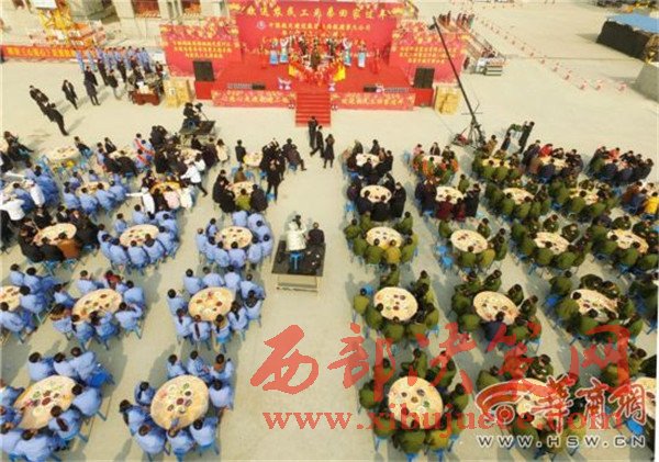 “大家雖在一個工地干活,但聚在一起吃飯還是第一次!”昨日上午10時30分,在該項目工地的一塊廣場上,120張桌子擺在中間場面相當(dāng)震撼,廣場西側(cè),20多位廚師正在為這頓團(tuán)圓飯而忙碌著。