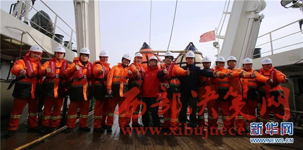 “海洋六號”科考人員完成多道地震調(diào)查后擺出慶賀手勢。“海洋六號”綜合調(diào)查船是由我國自主設(shè)計(jì)建造,集地震、地質(zhì)調(diào)查等多項(xiàng)調(diào)查功能于一體的綜合地質(zhì)地球物理調(diào)查船。它計(jì)劃2月初離開南極半島海域啟程返航,今年4月返抵廣州。