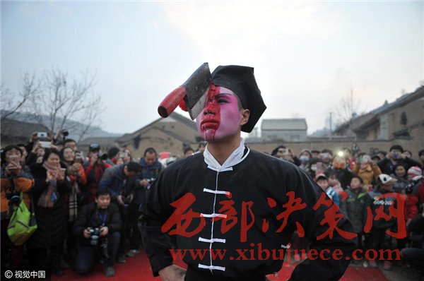 2017年2月3日,陜西隴縣東南鎮(zhèn)閆家庵村,一場“血社火”的表演正在進行中。今年春節(jié),閆家庵村從大年初五開始連續(xù)三天進行血社火表演,當(dāng)日是最后一天。