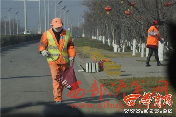 從十字路口向南約450米長的東側(cè)道路都屬于潘雙成的保潔區(qū),自從西安開展環(huán)境大整治治理以來,“綠化帶里的垃圾都撿干凈了,現(xiàn)在就是巡查著看看隨意丟棄的垃圾。”潘雙成說,環(huán)境大整治不但要求保潔員的工作更加細(xì)致,也要求沿街商戶注意保持門前區(qū)域干凈衛(wèi)生,“垃圾清掃車也加大清掃頻次,除了路面上比較明顯的垃圾以外,灑水車和清掃車也會把一些小垃圾集中到路邊來,我們清掃起來也比較方便。”潘雙成說,路面沒有煙頭、果皮紙屑是清掃的基本要求,“就像這條道路,偶爾有貨車拋撒的垃圾就比較費勁,但是從車內(nèi)隨意向外丟棄垃圾的現(xiàn)象明顯減少了,只有在十字路口,一些等待紅燈的車?yán)飼S便丟下煙頭,這時候也注意不到,等到車開走了才能看到,所以我經(jīng)常在十字路口多等上一段時間,看見煙頭就掃干凈。”