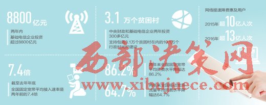 陳肇雄介紹,兩年來(lái),工信部會(huì)同有關(guān)部委,扎實(shí)推進(jìn)網(wǎng)絡(luò)提速降費(fèi)相關(guān)工作落實(shí)。圍繞網(wǎng)絡(luò)提速,一是深入推進(jìn)寬帶中國(guó)戰(zhàn)略。兩年內(nèi)基礎(chǔ)電信企業(yè)投資超過(guò)8800億元,國(guó)家發(fā)改委安排中央預(yù)算內(nèi)投資10億元,專(zhuān)項(xiàng)建設(shè)基金480億元,建成了全球規(guī)模最大的固定光纖和移動(dòng)4G網(wǎng)絡(luò)。二是加快實(shí)施電信普遍服務(wù)。中央財(cái)政和基礎(chǔ)電信企業(yè)兩年投資300多億元,支持包括3.1萬(wàn)個(gè)貧困村在內(nèi)的10.1萬(wàn)個(gè)行政村光纖建設(shè)。三是優(yōu)化互聯(lián)網(wǎng)骨干網(wǎng)網(wǎng)絡(luò)結(jié)構(gòu)。擴(kuò)容骨干網(wǎng)網(wǎng)間互聯(lián)帶寬1562G,新增3個(gè)互聯(lián)網(wǎng)骨干直聯(lián)點(diǎn),總數(shù)達(dá)到了13個(gè)。截至2016年年底,全國(guó)固定寬帶平均接入速率達(dá)到49M,是兩年前的7.4倍。光纖寬帶用戶(hù)占比從34.1%提升到76.6%,進(jìn)入全球前三位。根據(jù)中國(guó)寬帶聯(lián)盟發(fā)布的數(shù)據(jù),我國(guó)移動(dòng)寬帶網(wǎng)絡(luò)用戶(hù)平均體驗(yàn)速率已經(jīng)從3G的3.9M提升到目前4G的11.9M。4G用戶(hù)已經(jīng)達(dá)到7.7億戶(hù),占全球4G用戶(hù)的一半以上。