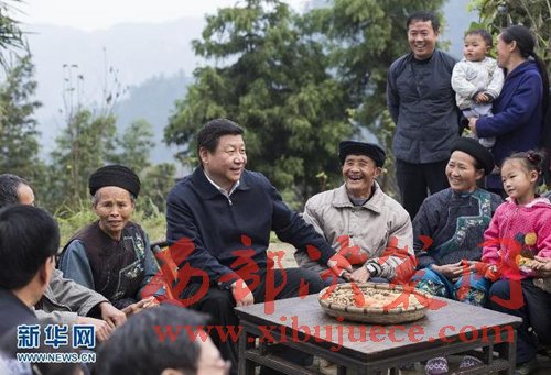 2013年11月3日至5日,中共中央總書(shū)記、國(guó)家主席、中央軍委主席習(xí)近平在湖南考察。這是3日下午,習(xí)近平在湘西土家族苗族自治州花垣縣排碧鄉(xiāng)十八洞村同村干部和村民座談。