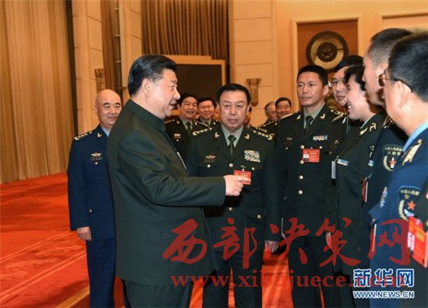 3月12日,中共中央總書記、國家主席、中央軍委主席習近平出席十二屆全國人大五次會議解放軍代表團全體會議并發(fā)表重要講話。這是會議結(jié)束時,習近平親切接見來自基層部隊的部分軍隊人大代表。