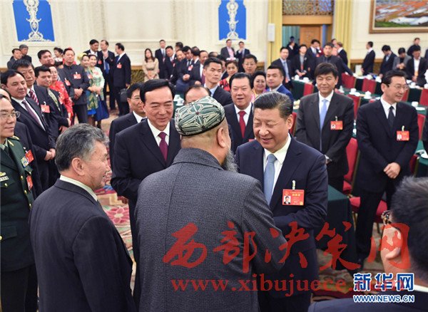2017年3月10日,習(xí)近平在新疆代表團(tuán)參加審議時(shí)說,要全面貫徹黨的民族政策,高舉各民族大團(tuán)結(jié)旗幟,引導(dǎo)各族群眾增強(qiáng)對偉大祖國、中華民族、中華文化、中國共產(chǎn)黨、中國特色社會(huì)主義的認(rèn)同,像愛護(hù)自己的眼睛一樣愛護(hù)民族團(tuán)結(jié),像珍視自己的生命一樣珍視民族團(tuán)結(jié),像石榴籽那樣緊緊抱在一起。