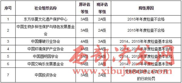 民政部要求,被降級的7家社會組織須在收到通知書之日起15日內(nèi)將原評估等級證書、牌匾退回民政部,換發(fā)相應的評估等級證書、牌匾。拒不退回或退換的,由民政部公告作廢。