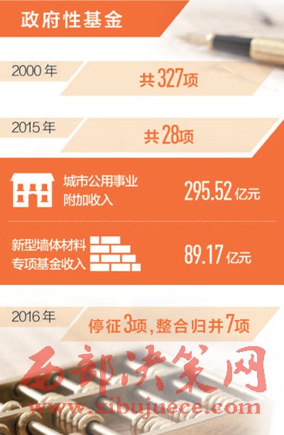 經(jīng)過幾輪清理規(guī)范后,到2015年,政府性基金已從2000年的327項(xiàng)減少到28項(xiàng)。2016年,國家進(jìn)一步清理收費(fèi)基金,停征價(jià)格調(diào)節(jié)基金等3項(xiàng)政府性基金,整合歸并散裝水泥專項(xiàng)資金等7項(xiàng)政府性基金。特別是針對(duì)小微企業(yè),加大了降費(fèi)力度。