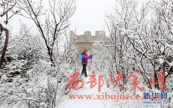 當(dāng)日,北京市懷柔區(qū)黃花城水長城迎來降雪,杏花、白雪與長城構(gòu)成了一幅幅美麗畫卷。