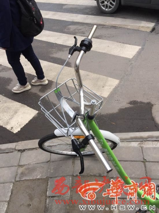 街頭一輛酷騎單車的車把手被人卸掉。