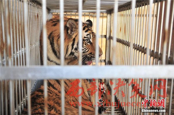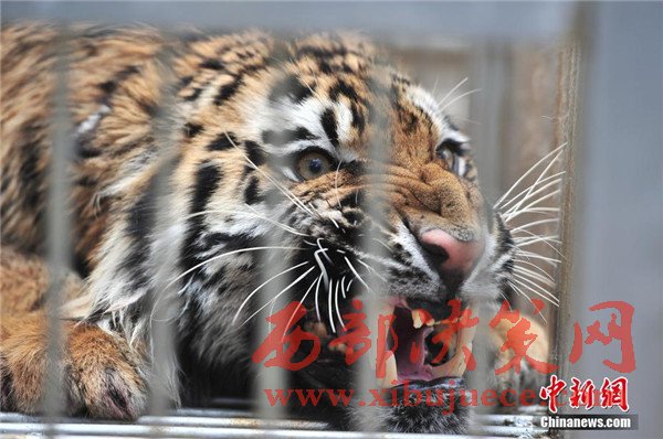 4月5日,關(guān)在籠子里的老虎。當(dāng)日,云南野生動(dòng)物園6頭老虎從繁育中心搬入散養(yǎng)區(qū),經(jīng)過一段時(shí)間的觀察適應(yīng)期后,就可以與游客見面。據(jù)工作人員介紹,在繁育中心人工飼養(yǎng)長(zhǎng)大的老虎到繁殖年齡后,就會(huì)搬到有更大活動(dòng)空間的散養(yǎng)區(qū)。云南野生動(dòng)物園是中國(guó)十大老虎繁殖基地之一。