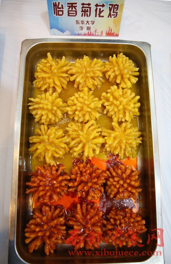 “中國(guó)第九大菜系”食堂菜的菜譜里,一天之內(nèi)多出了上百個(gè)新成員。11月12日,一場(chǎng)上海高校食堂間的“創(chuàng)新菜”比賽在上海大學(xué)寶山校區(qū)舉行。東華大學(xué)食堂借鑒“菊花魚”,推出了一道“怡香菊花雞”,也引起了現(xiàn)場(chǎng)的熱議,最終斬獲禽菜類前十名。