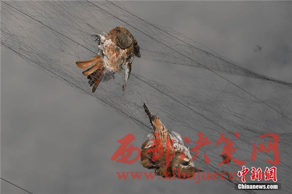 2月14日,山西太原郊區(qū)的一間果園內(nèi),為了保護農(nóng)作物的果農(nóng)搭建了捕鳥網(wǎng),三百余只不同種類的鳥被網(wǎng)圍困致死,有些已腐爛風干。