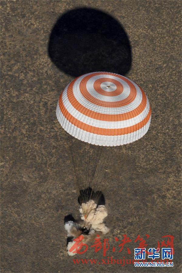 4月10日,在哈薩克斯坦杰茲卡茲甘附近,宇航員乘坐的“聯(lián)盟MS-02”飛船正在著陸。10日,三名宇航員從國(guó)際空間站成功返回地球,并在哈薩克斯坦著陸。