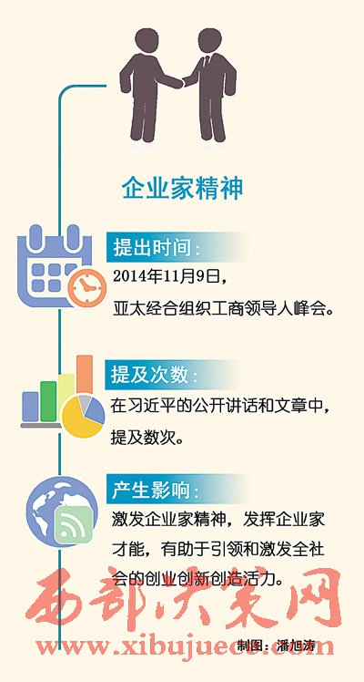 “我們?nèi)嫔罨母?,就要激發(fā)市場蘊藏的活力。市場活力來自于人,特別是來自于企業(yè)家,來自于企業(yè)家精神。”2014年11月9日,在亞太經(jīng)合組織工商領(lǐng)導(dǎo)人峰會上,面對來自數(shù)十個國家和地區(qū)的1500多位工商界代表,國家主席習(xí)近平特別提及了企業(yè)家精神。
