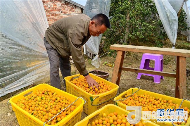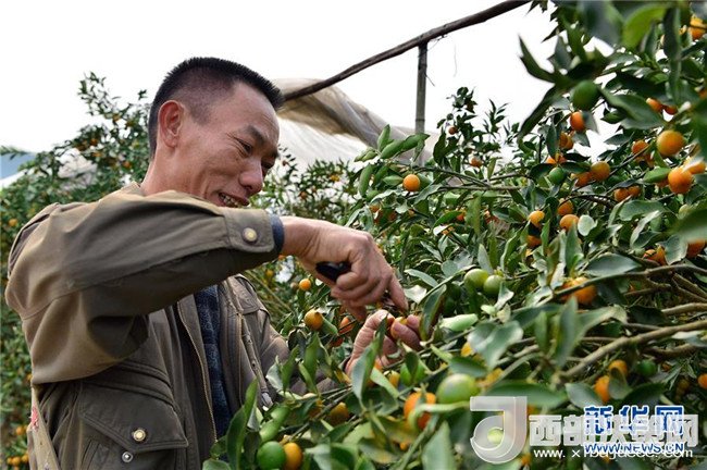 近年來(lái),廣西融安縣因地制宜,把金桔列為扶貧增收的重要產(chǎn)業(yè),通過(guò)農(nóng)業(yè)獎(jiǎng)補(bǔ)政策、專(zhuān)業(yè)種植技術(shù)培訓(xùn)等鼓勵(lì)貧困戶(hù)種植金桔,助力脫貧。融安縣大將鎮(zhèn)雅仕村的貧困戶(hù)漆昭賢,曾常年在外地打工,生活條件艱苦。2014年在縣里政策引導(dǎo)下,他返鄉(xiāng)種植金桔,并獲得專(zhuān)項(xiàng)補(bǔ)貼和無(wú)息貸款,連續(xù)三年參加縣農(nóng)業(yè)局等單位舉辦的種植技術(shù)培訓(xùn)班。如今,漆昭賢不僅在自己的地里種金桔,還承包了周?chē)r(nóng)戶(hù)的土地,種植面積十余畝,今年預(yù)計(jì)產(chǎn)量可達(dá)16000斤,純收入有望達(dá)到4萬(wàn)元。記者李絢麗攝