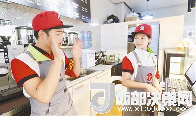 6月21日,在貴陽(yáng)市貴陽(yáng)北站一家名為“無聲飲品”的飲料店內(nèi),服務(wù)員在用手語相互交流。從點(diǎn)單到付款,再到制作交遞,店員和顧客間都通過手語或手寫紙條進(jìn)行交流。這家小店是貴陽(yáng)市盲聾啞學(xué)校的校企合作項(xiàng)目,店內(nèi)所有服務(wù)人員均是聾啞學(xué)生。截至目前,貴陽(yáng)已有4家“無聲飲品”店,為近50名聾啞學(xué)生提供了實(shí)習(xí)和就業(yè)平臺(tái)。歐東衢攝