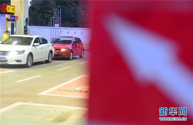 1月14日,車輛在江蘇省連云港市連云區(qū)一加油站等待加油。 新華社發(fā)(王春 攝)
