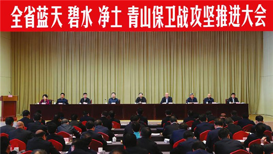 3月26日,全省藍(lán)天、碧水、凈土、青山保衛(wèi)戰(zhàn)攻堅推進(jìn)大會在西安召開。省委書記胡和平出席會議并講話。 記者 宋紅梅攝