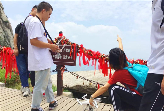 《百家講壇》魏新學者、《奇葩說第五季》清華名嘴楊奇函及中國道教協(xié)會車道長在西峰頂拍攝《華山論劍》文化旅游紀念片
