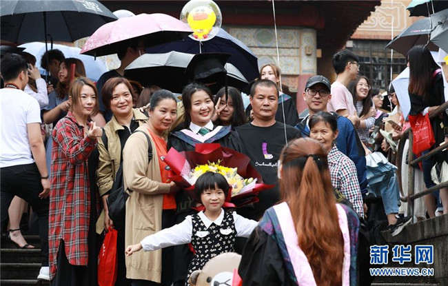 5月4日,華南農(nóng)業(yè)大學(xué)畢業(yè)生與家人在校園里拍照留念。 當(dāng)日是五四青年節(jié),在位于廣州的華南農(nóng)業(yè)大學(xué)校園里,該校2019屆畢業(yè)生開始拍攝畢業(yè)合影,留下青春的紀(jì)念。 新華社記者 王瑞平 攝