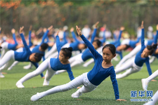 當(dāng)日,天津市和平區(qū)岳陽道小學(xué)舉行校園運動會,全校2000余名學(xué)生通過參與十余項團隊特色體育活動,感受體育運動的魅力。 新華社發(fā)(劉東岳 攝)