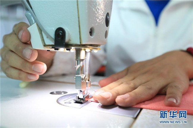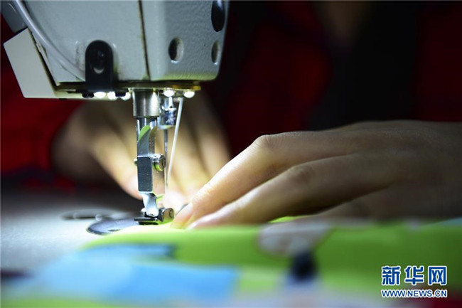 5月15日,在畢節(jié)市特殊教育學校,一名學生在縫制床單。 新華社發(fā)(尚宇杰 攝)