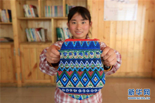 5月15日,在畢節(jié)市特殊教育學校,一名學生在展示自己制作的手工藝品。 新華社發(fā)(王純亮 攝)