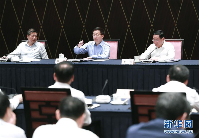 6月3日,中共中央政治局常委、國務(wù)院副總理、推動(dòng)長三角一體化發(fā)展領(lǐng)導(dǎo)小組組長韓正在上海主持召開推動(dòng)長三角一體化發(fā)展領(lǐng)導(dǎo)小組會(huì)議。 新華社記者 龐興雷 攝
