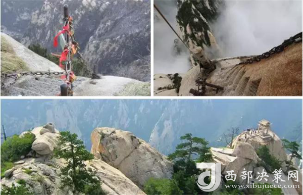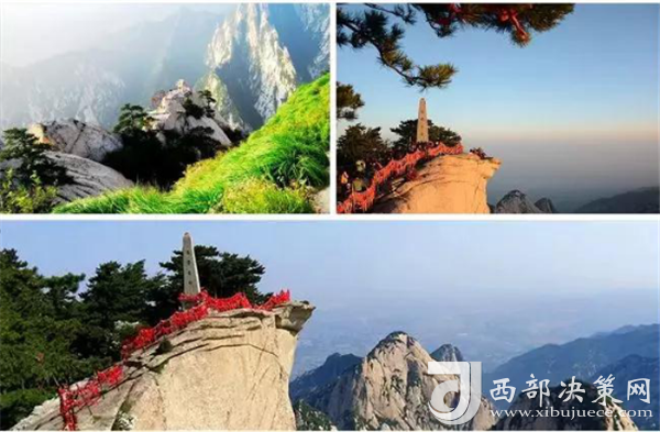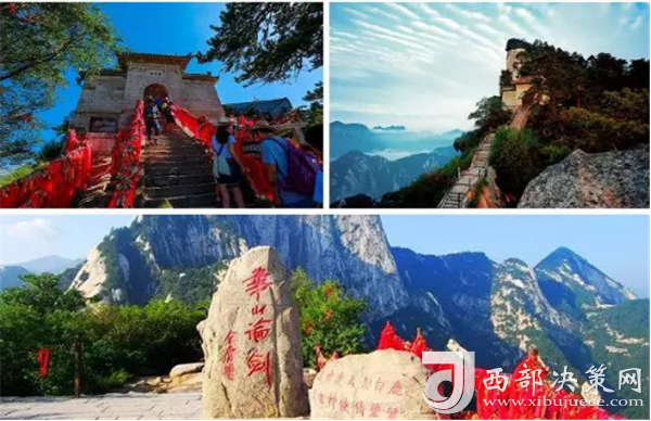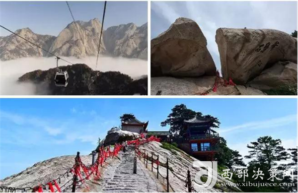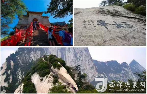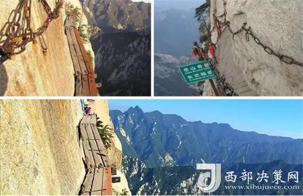 華山著名景區(qū)多達210余處,有凌空架設的長空棧道,三面臨空的鷂子翻身,以及在峭壁絕崖上鑿出的千尺幢、百尺峽、老君犁溝等,其中華岳仙掌被列為關中八景之首。