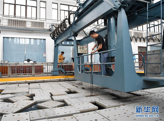 在西北工業(yè)大學航海學院消聲水池實驗室,學生在調(diào)試實驗儀器(6月17日攝)。