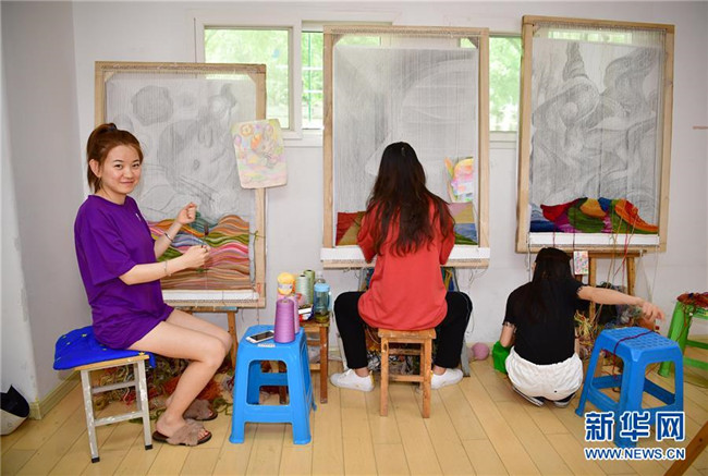 西安美術學院特殊教育藝術學院工藝美術專業(yè)學生在進行纖維藝術創(chuàng)作(5月23日攝)。新華社記者邵瑞攝