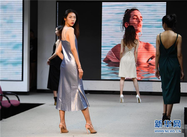 西安工程大學2018級服裝設計與表演專業(yè)的學生在練習動態(tài)造型展示(5月24日攝)。新華社記者張博文攝