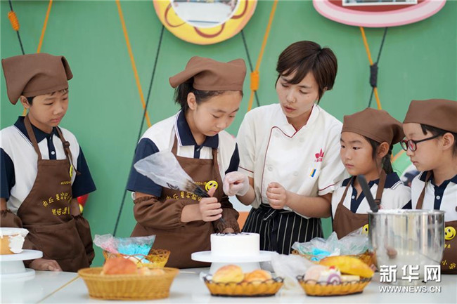 6月26日,內(nèi)丘縣實驗小學(xué)學(xué)生在烘焙課堂制作糕點。 新華社記者 朱旭東 攝