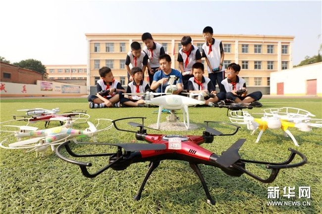 6月26日,內(nèi)丘縣實驗小學(xué)學(xué)生在參加無人機(jī)特色課程。新華社記者 朱旭東 攝