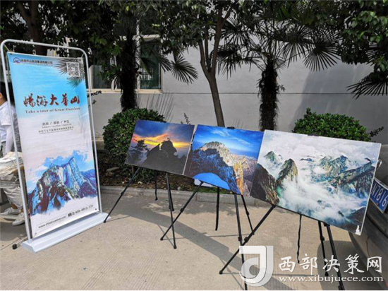 “演繹經(jīng)典”校園活動開場前,舞臺前方的投影大屏循環(huán)播放華山風(fēng)光宣傳片,奇險峻秀的大美華山風(fēng)光引得現(xiàn)場觀眾贊嘆不絕。舞臺下方分別通過華山風(fēng)光攝影展、活動展架等形式展示了華山四季的絕美風(fēng)光,吸引眾多師生駐足觀看。