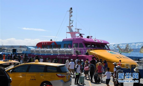 6月29日,游客從臺東縣碼頭乘船前往綠島觀光旅游。新華社記者 朱祥 攝
