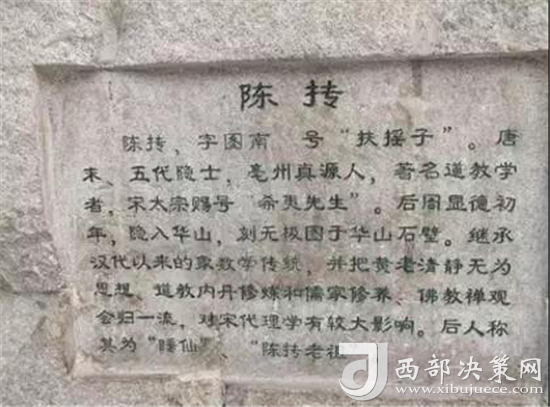 陳摶:陳摶(872年—989年),字“圖南”,號“扶搖子”、“希夷先生”(“希”指視而不見,“夷”指聽而不聞),常被視為神仙,尊稱為陳摶老祖、希夷祖師等。主張以睡眠,休養(yǎng)生息,時(shí)常一眠數(shù)日,人稱睡仙。相傳紫微斗數(shù)及無極圖說皆為陳摶之創(chuàng)作。五代末,宋朝初期亳州真源(今河南鹿邑)人,著名華山派道士。